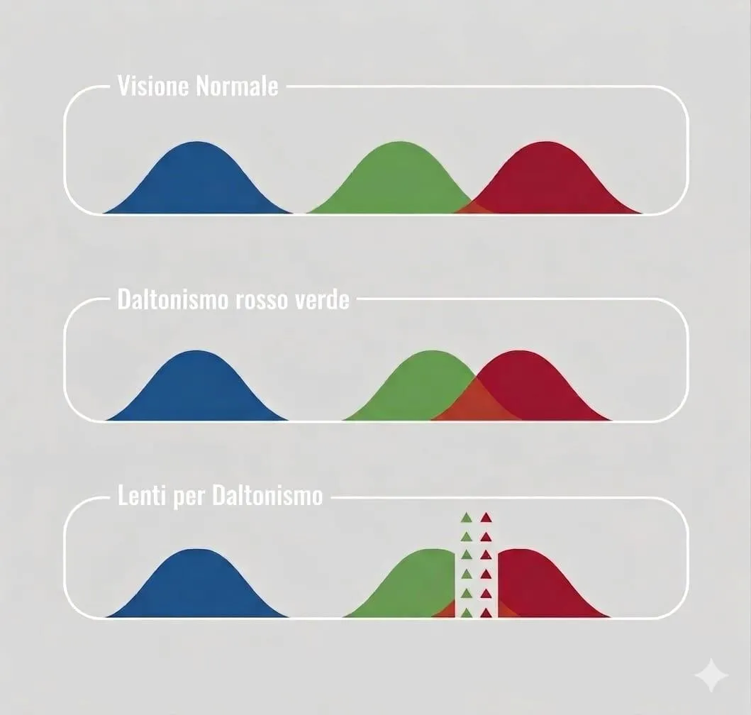 Importante: Non è una "cura": Queste lenti non correggono la patologia oculare di base, ma manipolano la luce in entrata per consentire al cervello di interpretare i colori in modo più accurato.